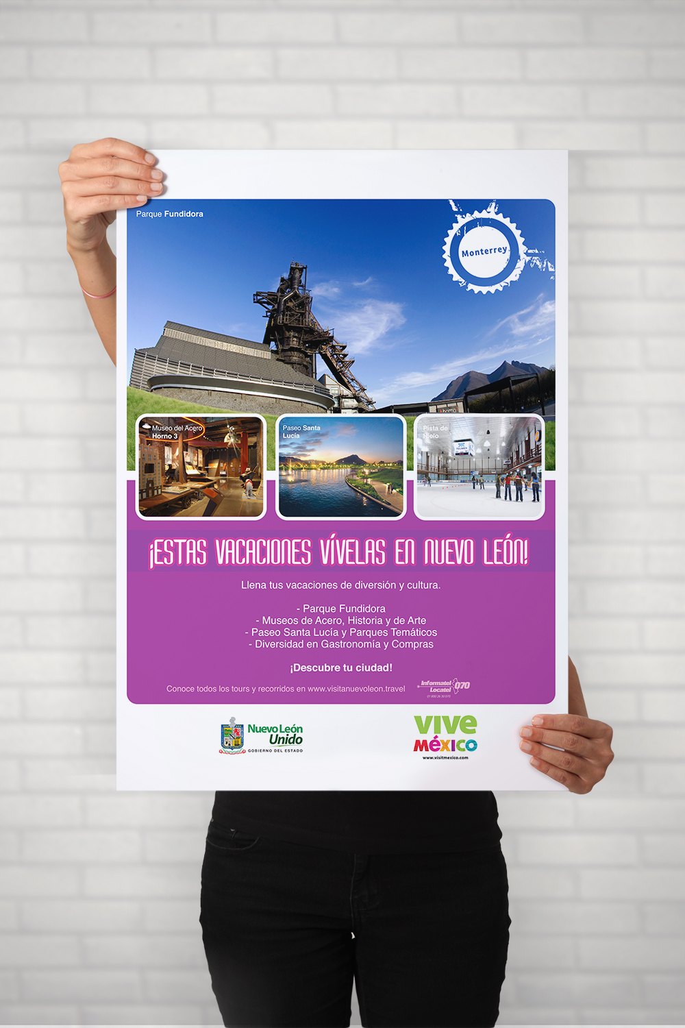 Desarrollamos aplicaciones gráficas, producción de publicaciones, fotografía, publicidad exterior y Canvas para exposiciones, optimizando la difusión de los principales atractivos turísticos de Monterrey y la región.